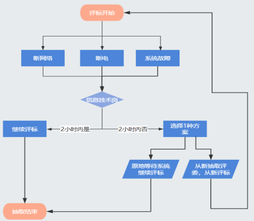 (4)故障较严重,在2小时内无法解决的,采购人应做好评标信息,并由采购人做好后续工作。采购人可以在下列两种方案中选择其一。